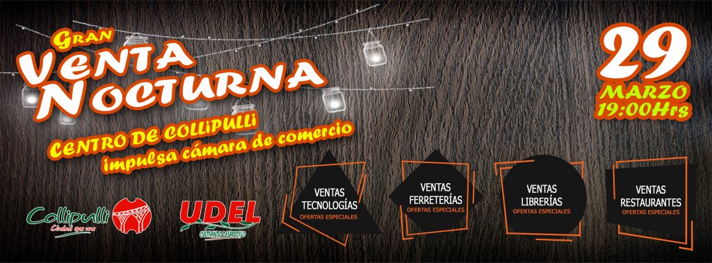 El día viernes 29 de marzo se desarrollará la segunda venta nocturna del año 2019, actividad organizada por la Cámara de Comercio de Collipulli, en conjunto a la Oficina Microempresas de la Municipalidad.