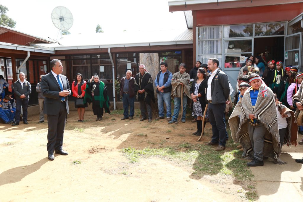 El Alcalde Manuel Macaya Ramírez, la Concejal Alejandra Malian y la Directora DAEM junto a la comunidad de la escuela Miguel Huentelen, director, profesores, alumnos y alumnas y Centro de Padres, participaron en Ceremonia Llellipun, que marca el inicio del año escolar 2019.