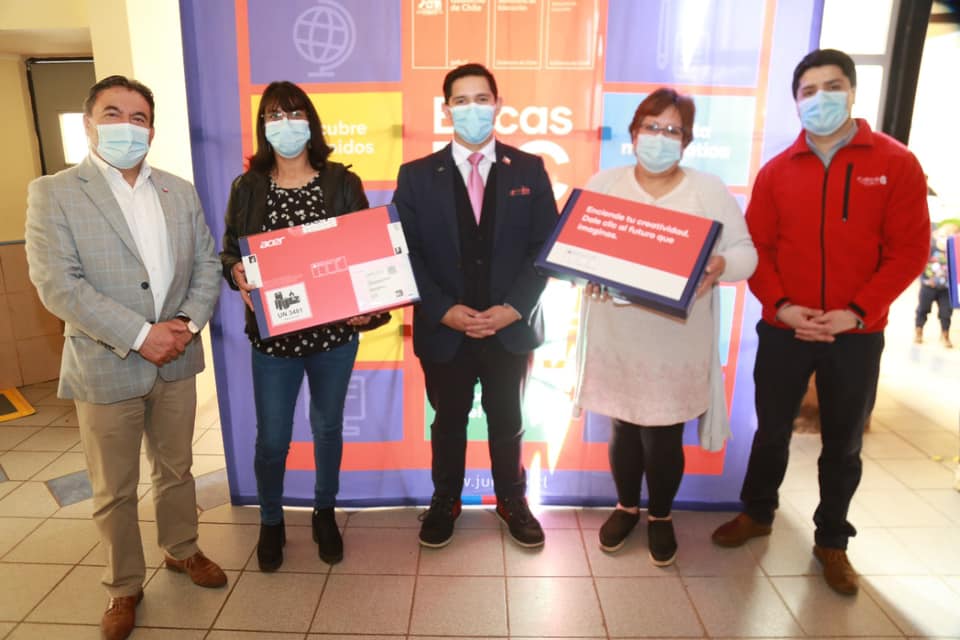 Con la presencia de nuestro alcalde subrogante y el Jefe Provincial de Educación, se logró recalcar que estos equipos son destinados para estudiantes de séptimo básico, que tienen como propósito apoyar los proceso educativos y acortar la brecha de acceso y uso de las tecnologías.