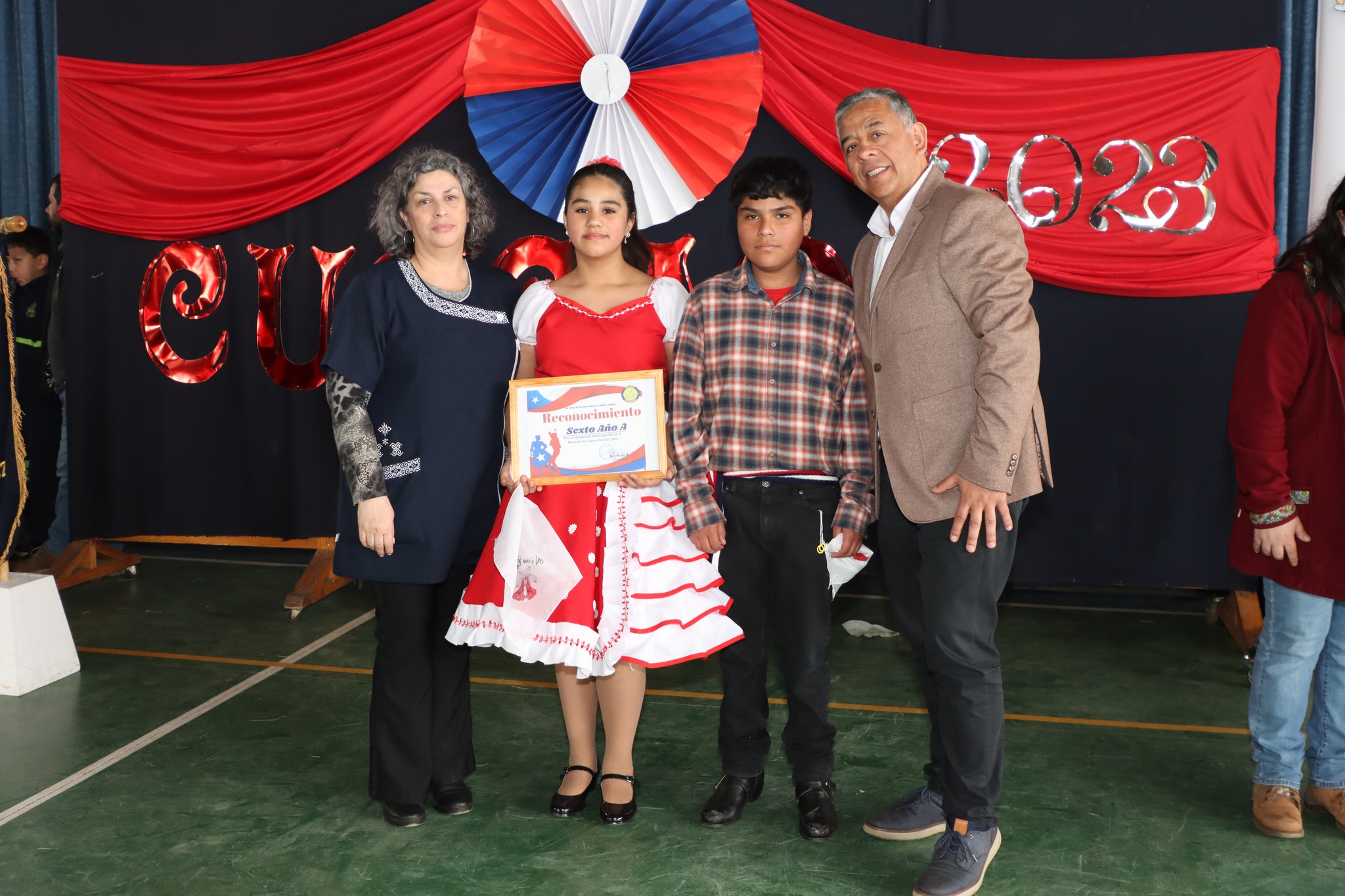 Bajo una atractiva escenografía, la comunidad educativa de Villa Mininco, destacó por una exhibición de nuestro baile nacional, recibiendo las felicitaciones de nuestro alcalde Manuel Macaya Ramírez, al ser testigo del trabajo que ha realizado el establecimiento para promover el sentido de pertenencia en los niños y niñas, con la finalidad de que se sientas orgullosos/as de ser chilenos y chilenas.
